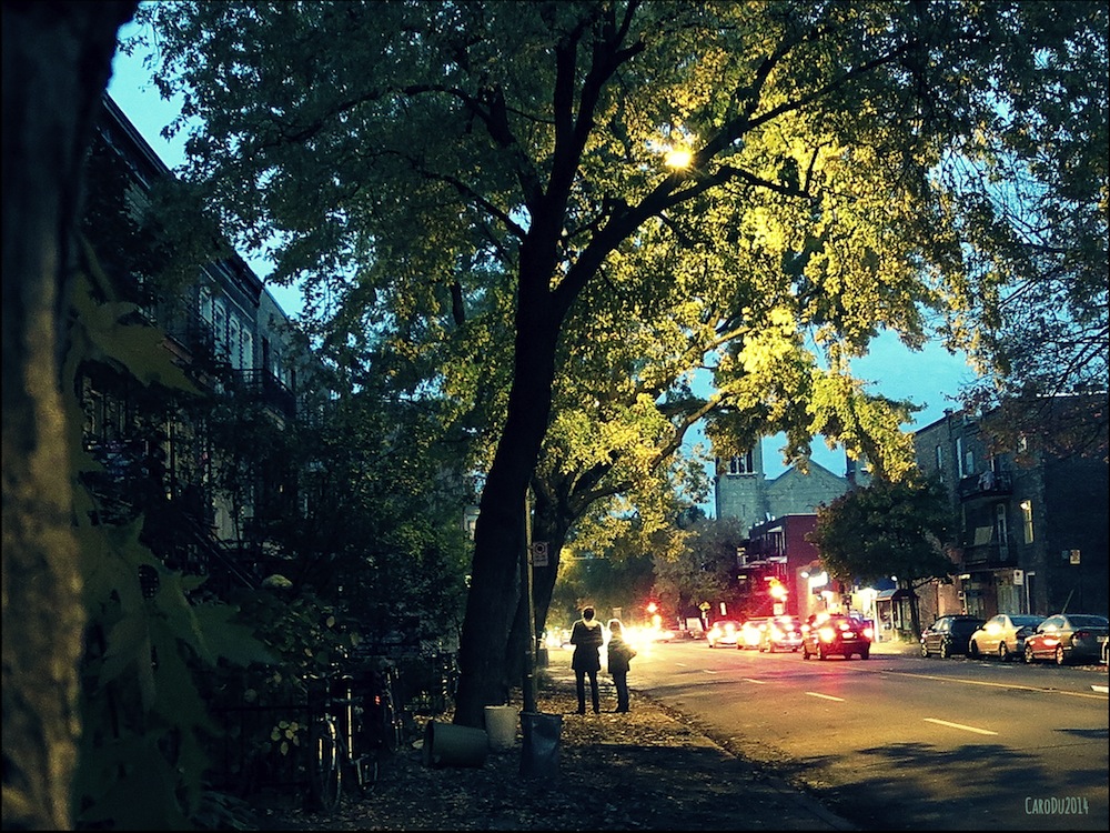 S’arrêter en chemin contre un gros arbre pour attraper une image.