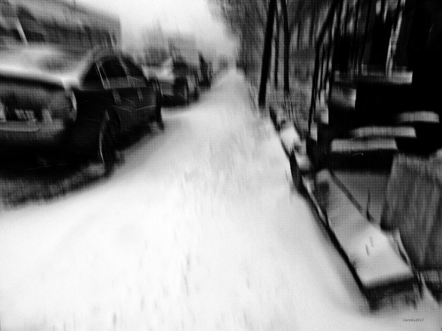 et ses longs trottoirs dans la neige