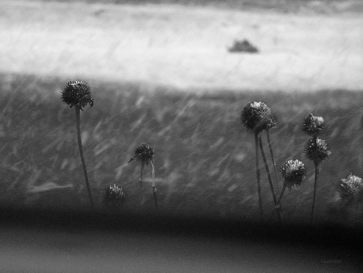 Les nuits sont de plus en plus froides et les jours de plus en plus courts. Depuis des semaines, je regarde par la fenêtre les têtes noires des rudbeckies balancées par le vent. Et là ce matin, la blancheur. Pour une deuxième fois.
