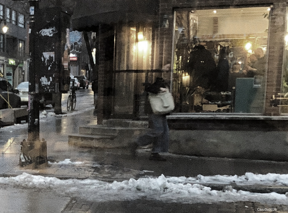 Beccus On a les mâchoires qu’on a, dit Jeanne. Ou un bec d’oiseau pour se faire les matins de l’âme. Ainsi, l’alouette est morte qui ne pardonnera plus. En attendant, la neige est belle et une fillette court. Elle porte un manteau bleu sarcelle, de la couleur de la maison au bord de la rivière. Photo : UNE TRANSPARENCE INATTENDUE * Janvier 2026 – MontréalPartage Envoyer un lien par e-mail à un ami(ouvre dans une nouvelle fenêtre) E-mail Partager sur X(ouvre dans une nouvelle fenêtre) X Partager sur Facebook(ouvre dans une nouvelle fenêtre) Facebook Partager sur Pinterest(ouvre dans une nouvelle fenêtre) Pinterest J’aime chargement… Publié par Caroline D Poésie et photographie (Montréal, Québec) Répondre à Beccus Laisser un commentaire Annuler la réponse.